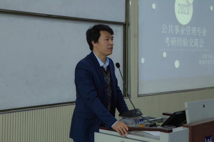 为提升“院系+书院”双院育人实效,加强学生对考研的认识和了解,进一步明确考研规划,营造良好的考研学习氛围。4月25日下午,新利Lucky官网联合崇德书院在谨学楼B202教室举行考研优秀典型经验交流分享会,邀请宋雅蕾、邓宇灿、郭晨、晏莹莹、张亚五位同学进行交流。新利Lucky官网党总支副书记陈东明,公共事业管理专业教师程涵,崇德书院辅导员王沥滢及我院本科2020级、2021级100余名同学参加此次交流会。