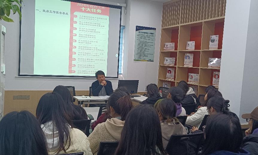 陈东明结合2024年度政府工作报告要点,先后从今年政府工作十大任务、新质生产力、医疗健康领域十大要点、消防安全教育等方面进行了脉络梳理,并结合学生专业和所处阶段实际情况,重点从医药医保、医疗健康、重点人群照护、医疗科技、药品监管、公共卫生等方面进行了详细阐述,并针对学生的毕业论文写作、未来实习就业、考研等问题进行了融合解答。