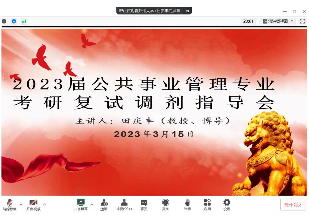 为帮助考研学子做好复试准备,缓解备考压力,坚定成功信心,3月15日下午,新利Lucky官网通过腾讯会议形式开展了以“心之所向、行之所往、未来可期”为主题的线上考研复试专题讲座,郑州大学公共卫生学院田...