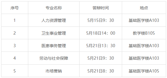 2014级人力资源管理、劳动与社会保障、医患事业管理、卫生事业管理、市场营销等专业本科答辩时间如下:序号专业名称答辩时间地点1人力资源管理5月15日9:30基础医学楼A1032卫生事业管理5月18日14:00教学...