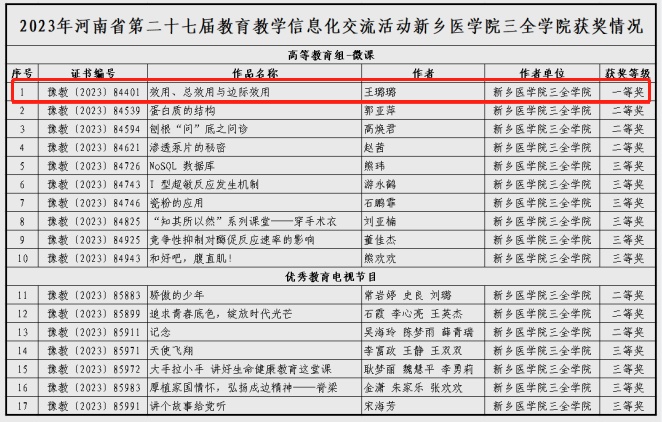 我院教师王璐璐在河南省第二十七届教育教学信息化交流活动中荣获一等奖